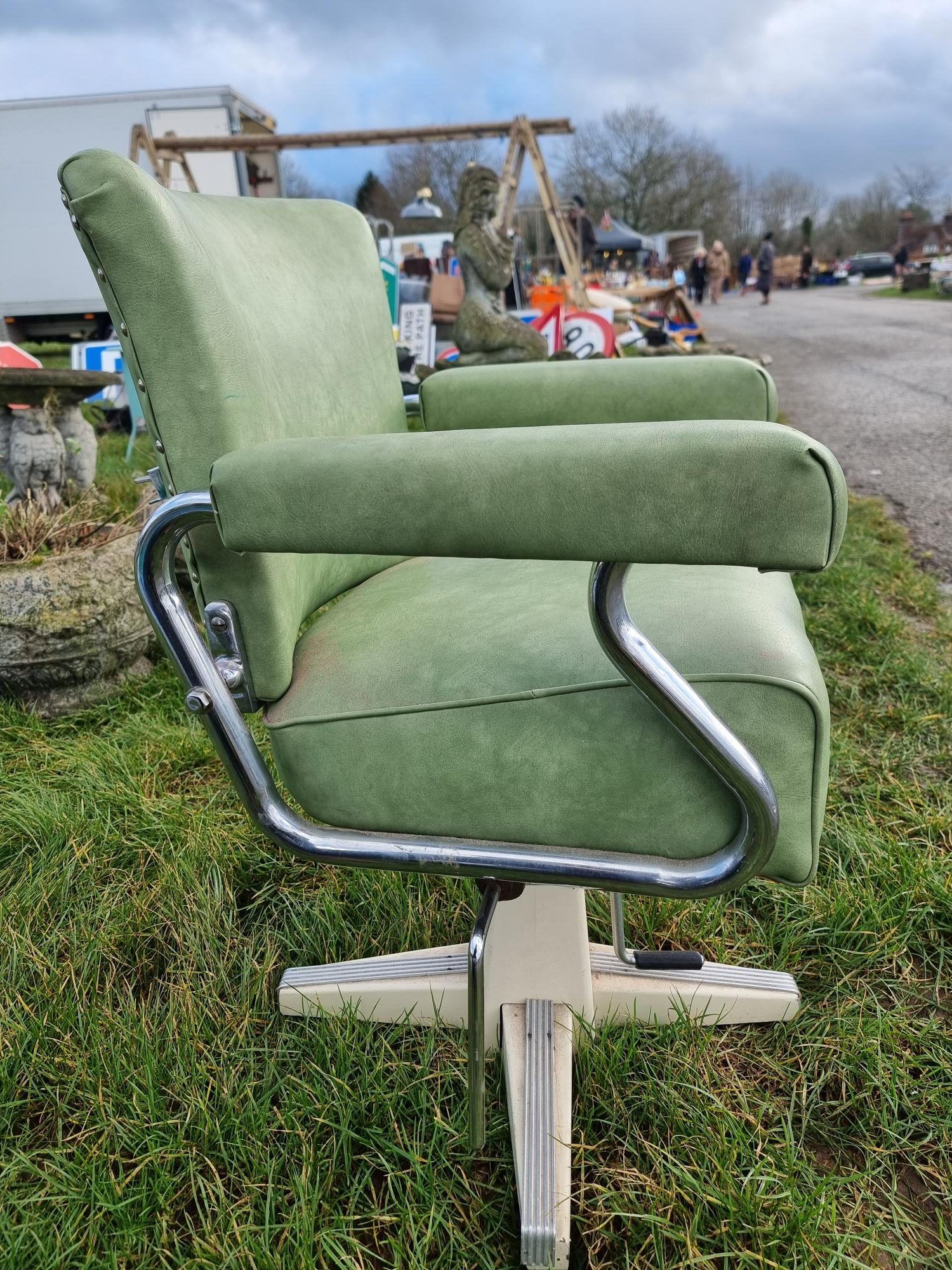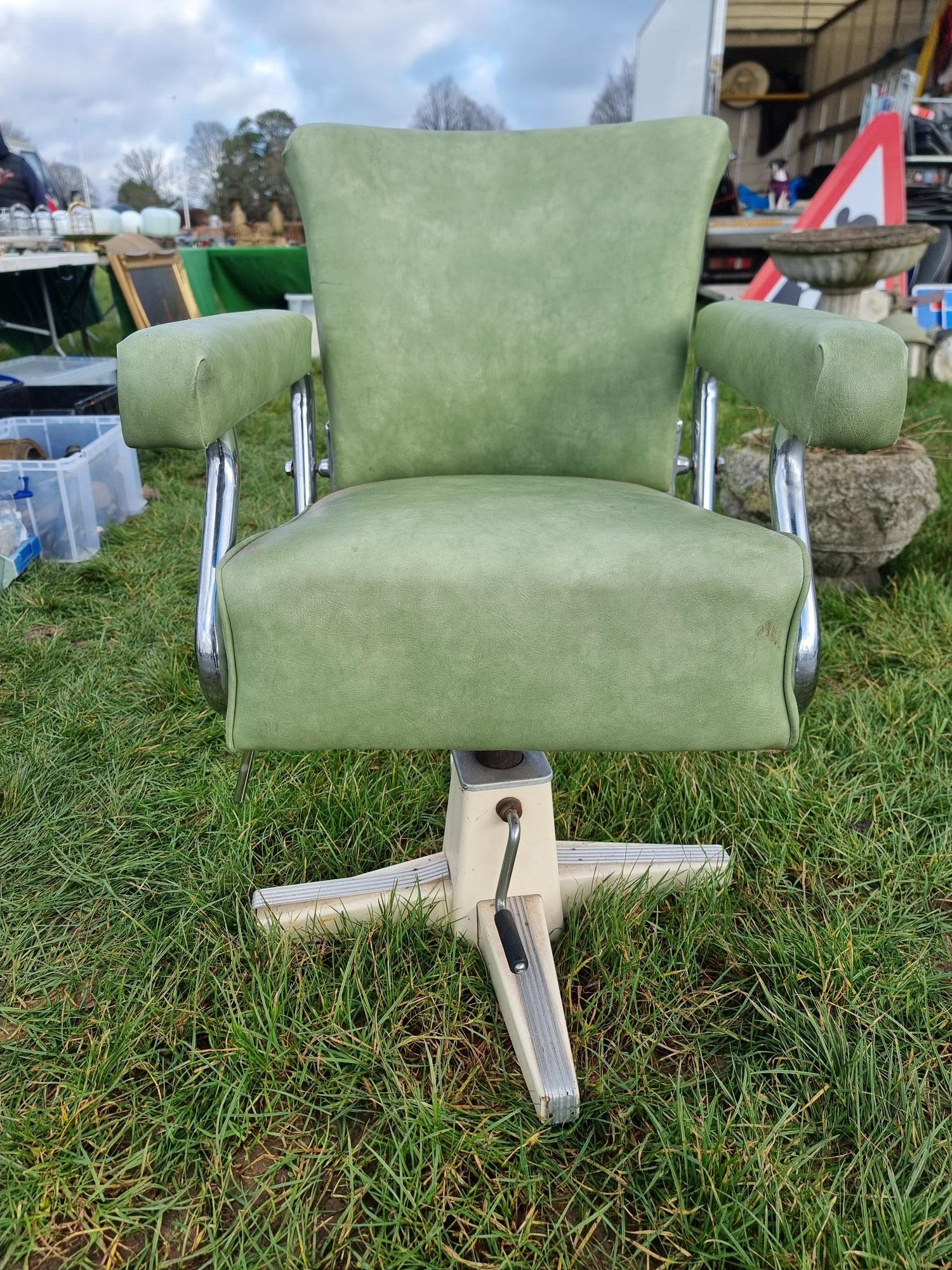 La Reine Barbers Restrocrat Chair Faux Green Leather